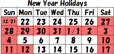 平素は格別のご愛顧くださり心より御礼申し上げます。 誠に勝手ながら、以下の期間を休業とさせていただきます。 2025年12月27日(土)~2026年1月4日(日) 皆様には何かとご不便をおかけ […]